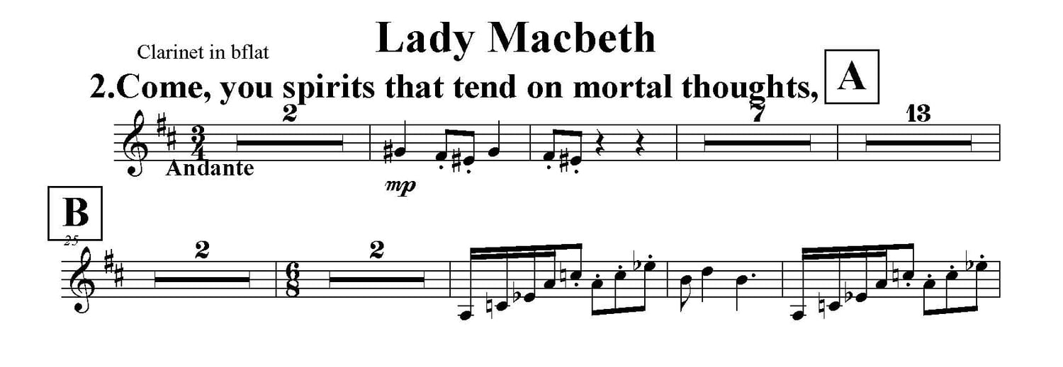 Come, you spirits that tend on mortal thoughts - part for clarinet