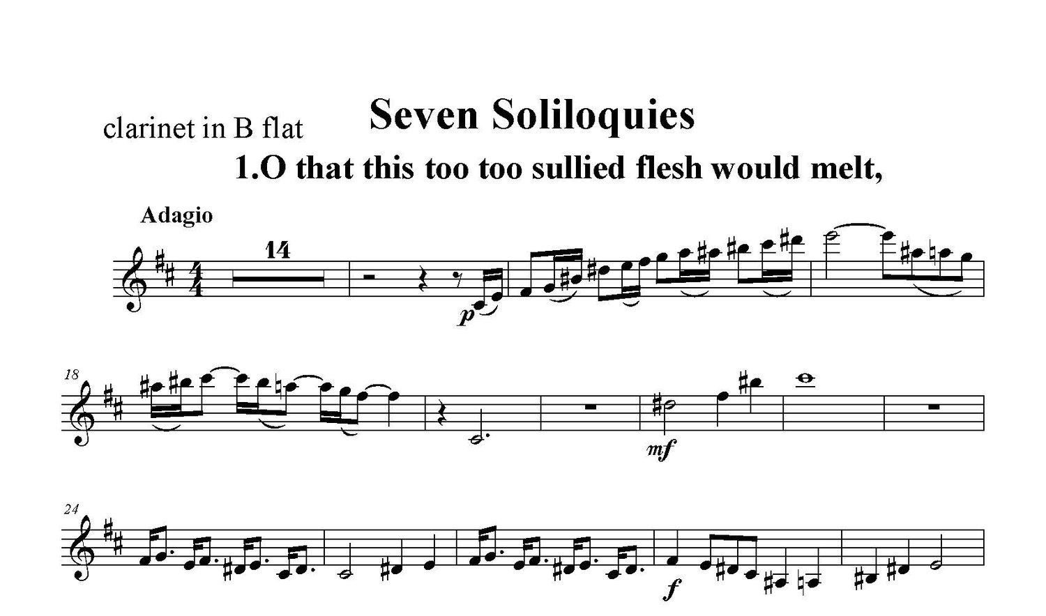 O that this too too sullied flesh would melt - part for clarinet