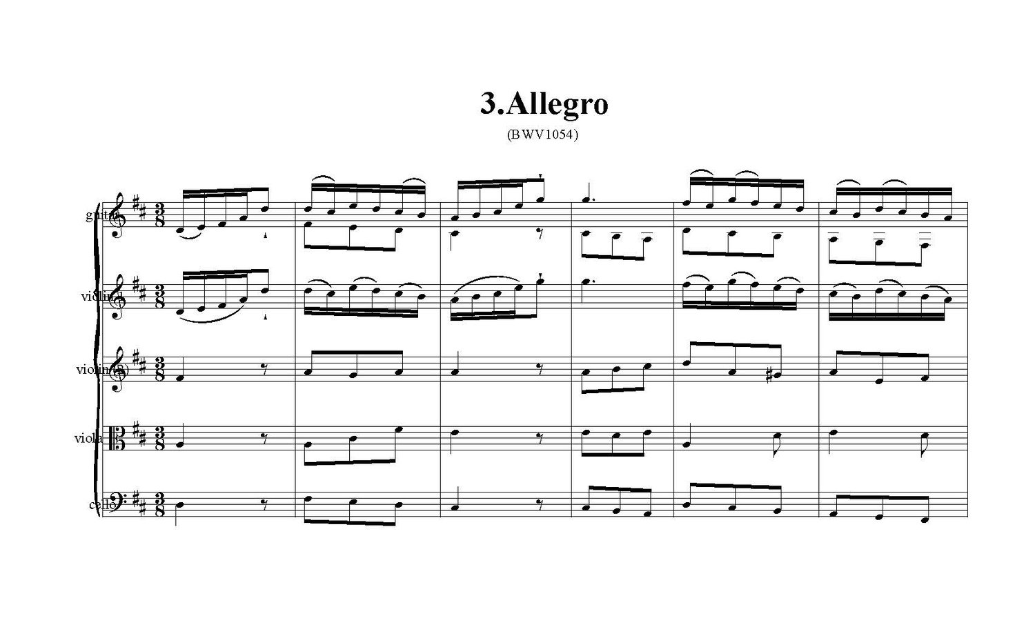 Concerto in D Major (BWV 1054) score - Johann Sebastian Bach