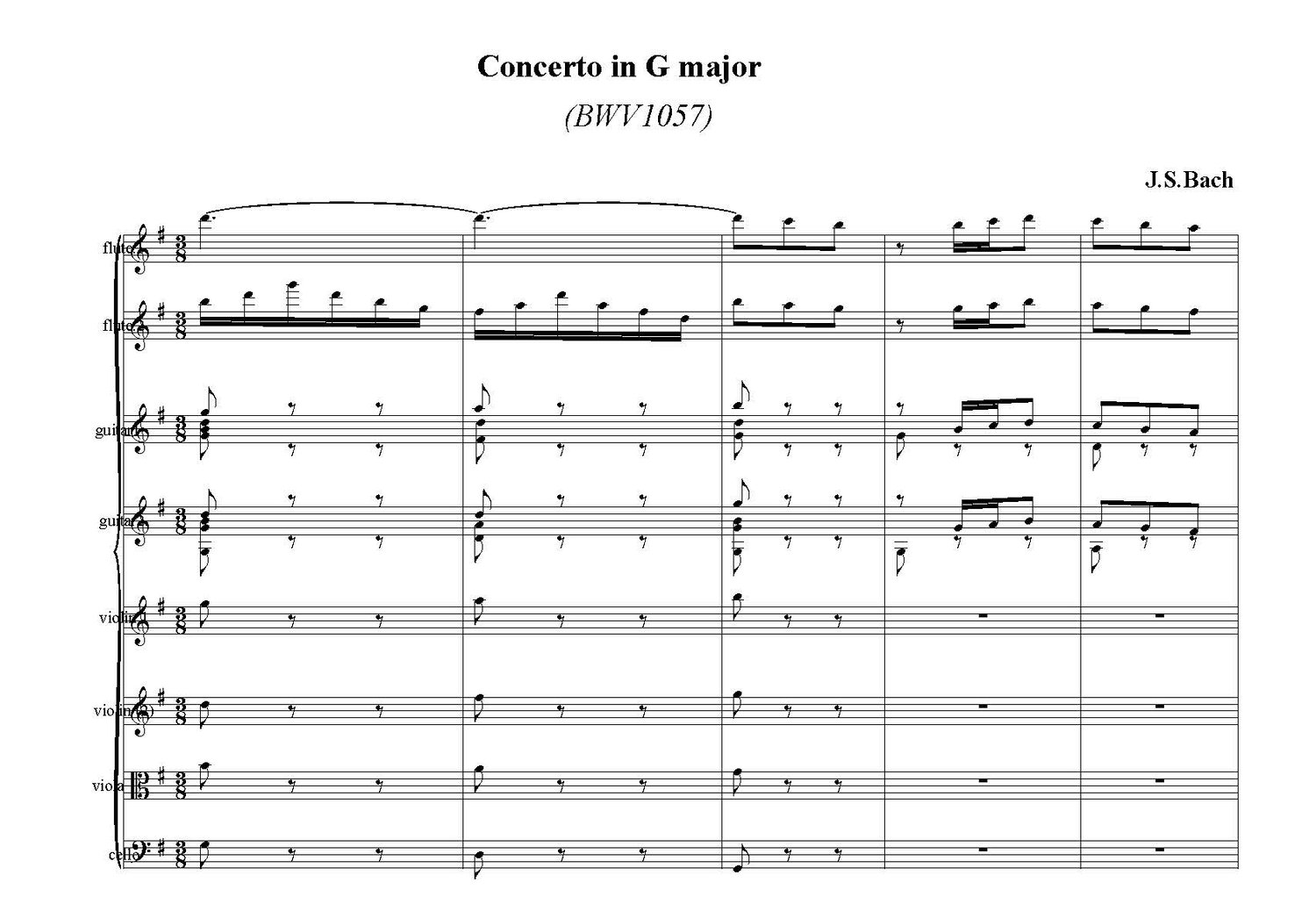 Title: Concerto in G Major for 2 flutes & 2 guitars (BWV 1057)