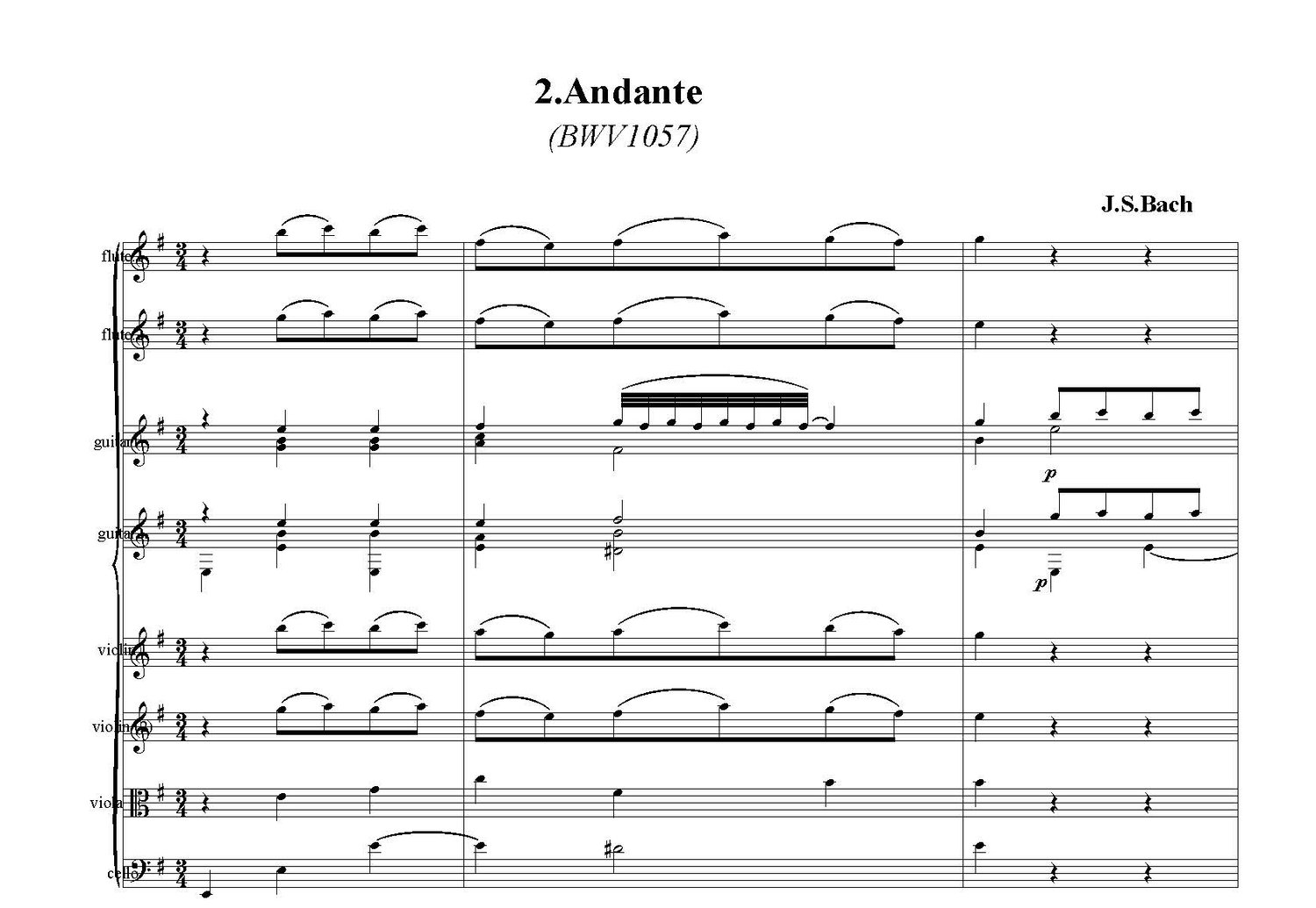 Concerto in G Major for 2 flutes & 2 guitars (BWV 1057) Andante