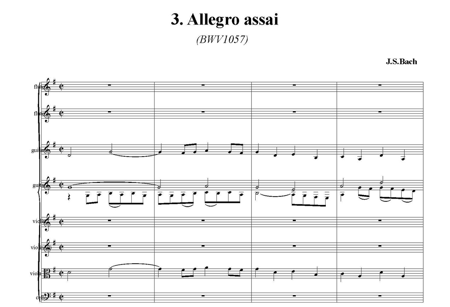 Concerto in G Major for 2 flutes & 2 guitars (BWV 1057) score - Johann Sebastian Bach
