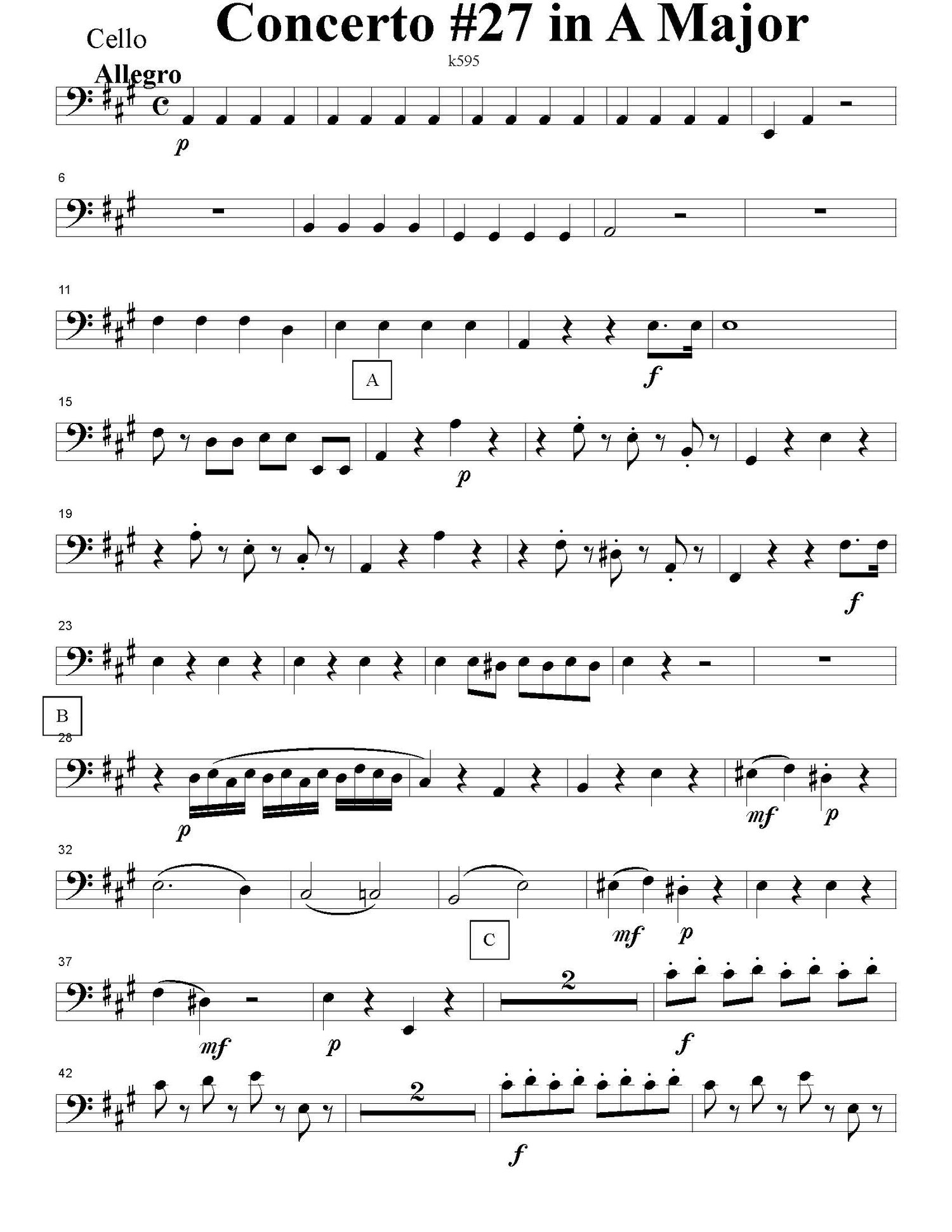 Concerto in A Major (k595) Allegro - cello