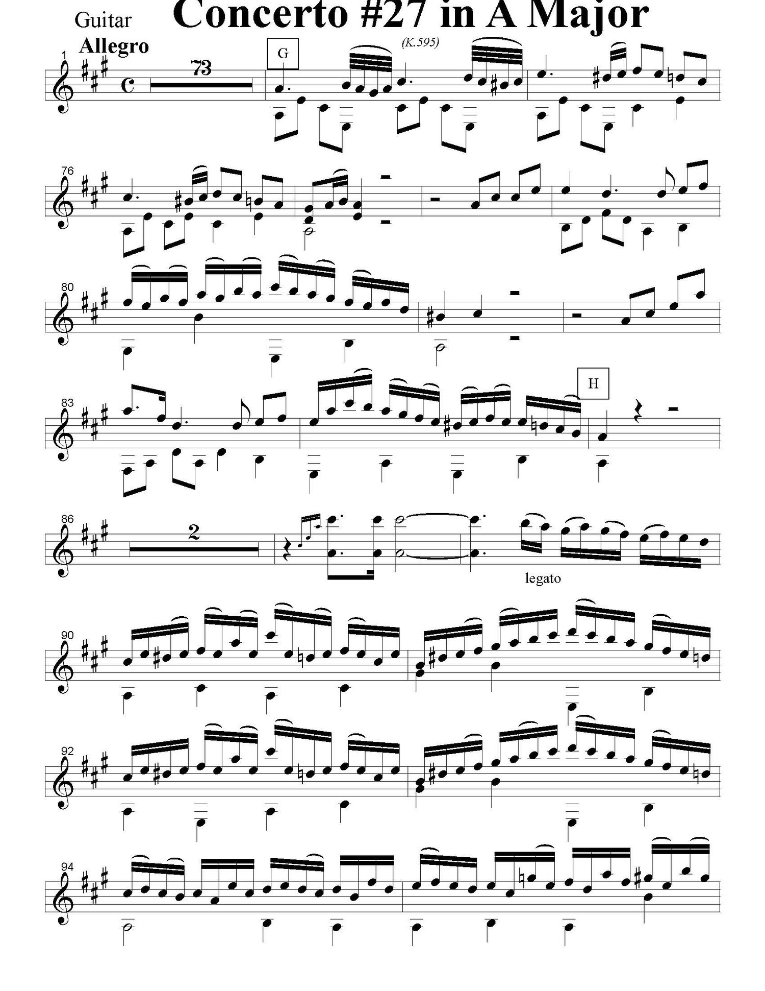 Concerto in A Major (k595) Allegro - guitar