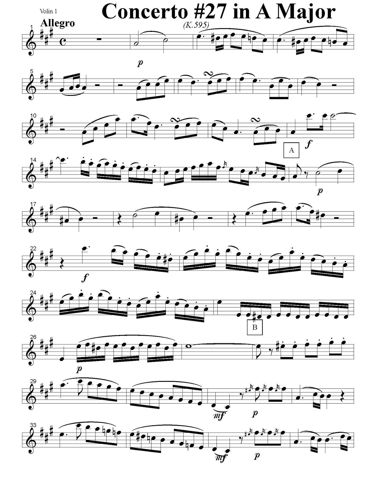 Concerto in A Major (k595) Allegro - violin 1