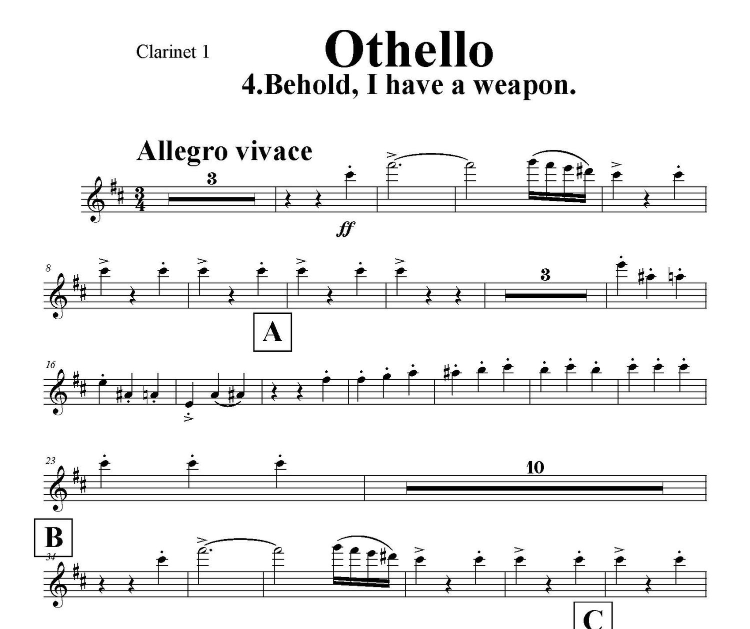 Behold, I have a weapon - part for clarinet 1