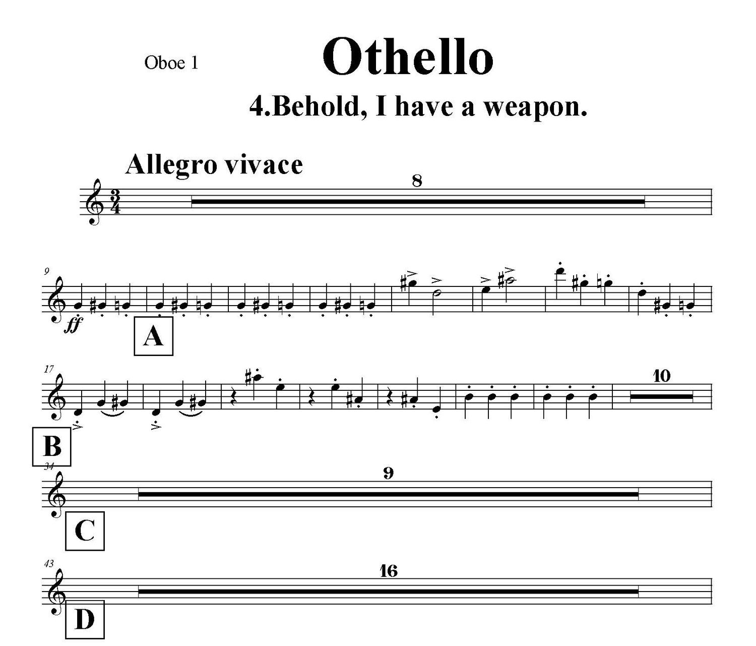 Title: Othello for bass voice and orchestra (4th Movement: Behold, I have a weapon)