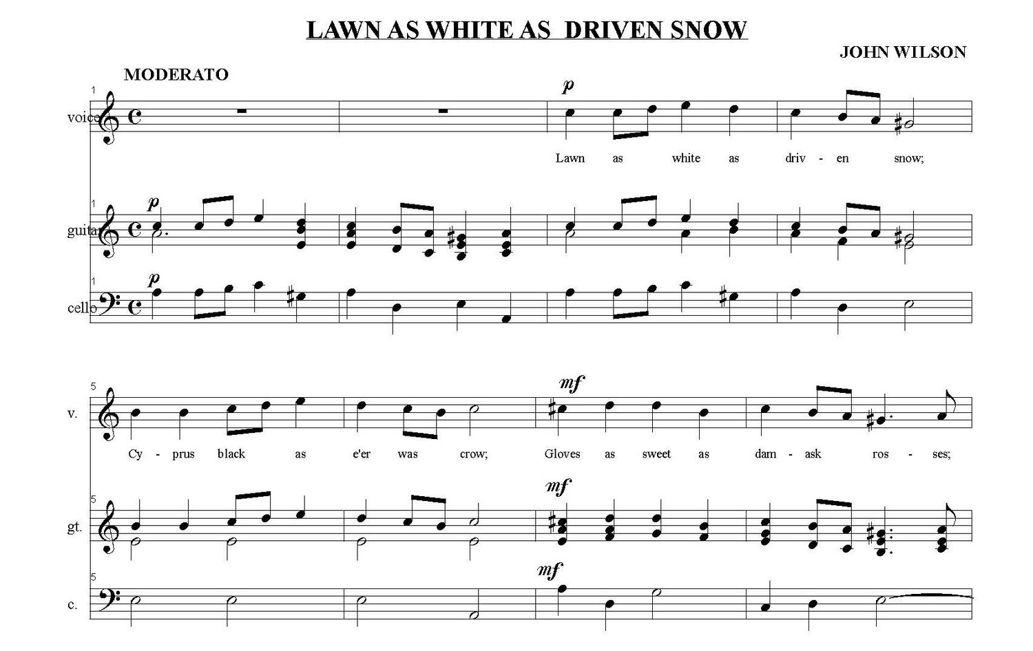 Lawn As White As Driven Snow (Consort with 3 parts) - John Wilson