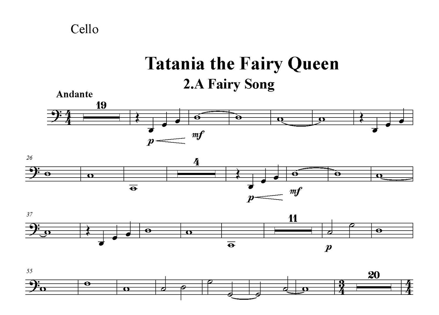 A Fairy Song - part for cello