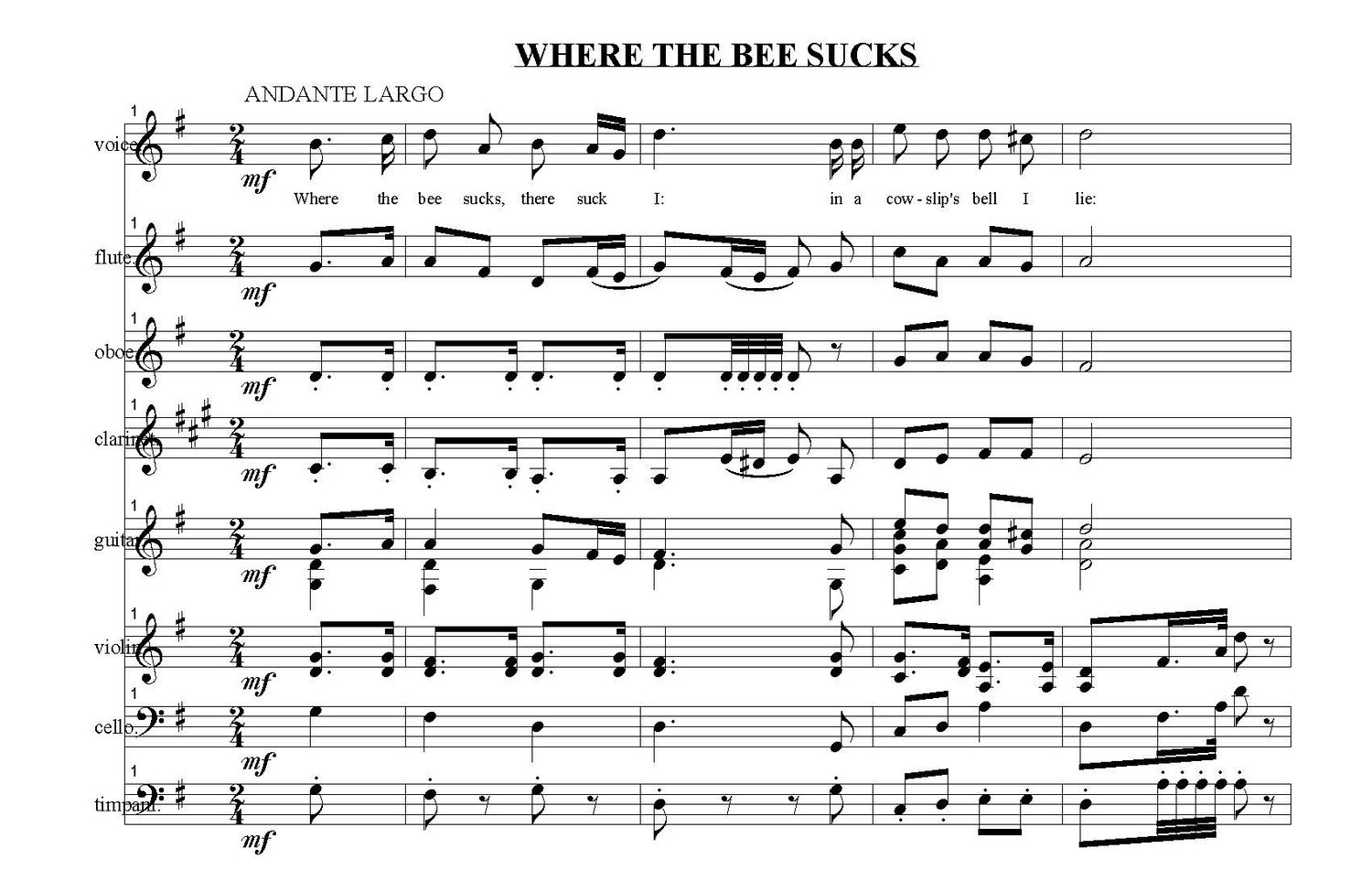 Where The Bee Sucks (full score)