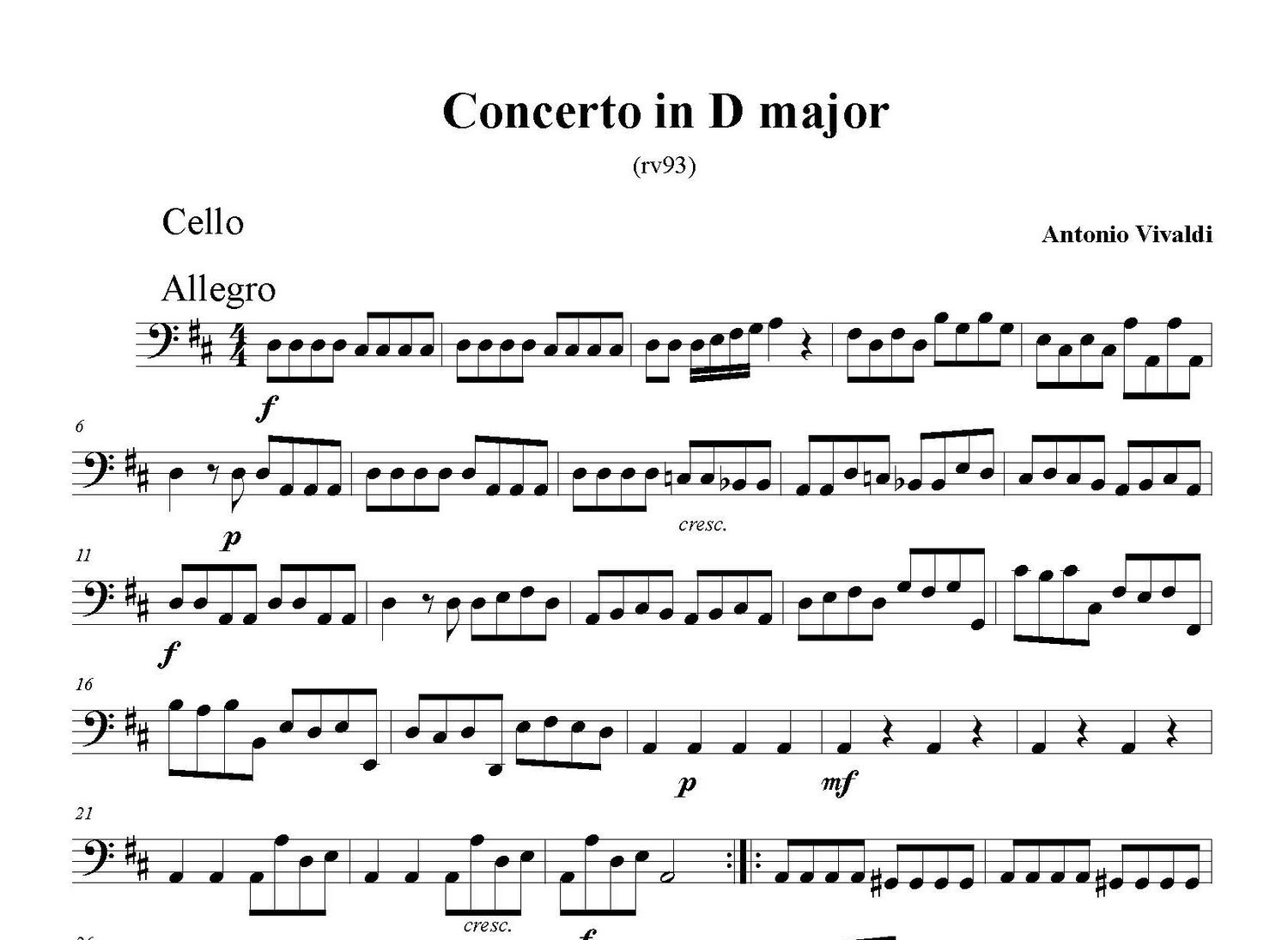 Concerto in D Major (rv93) Allegro - cello