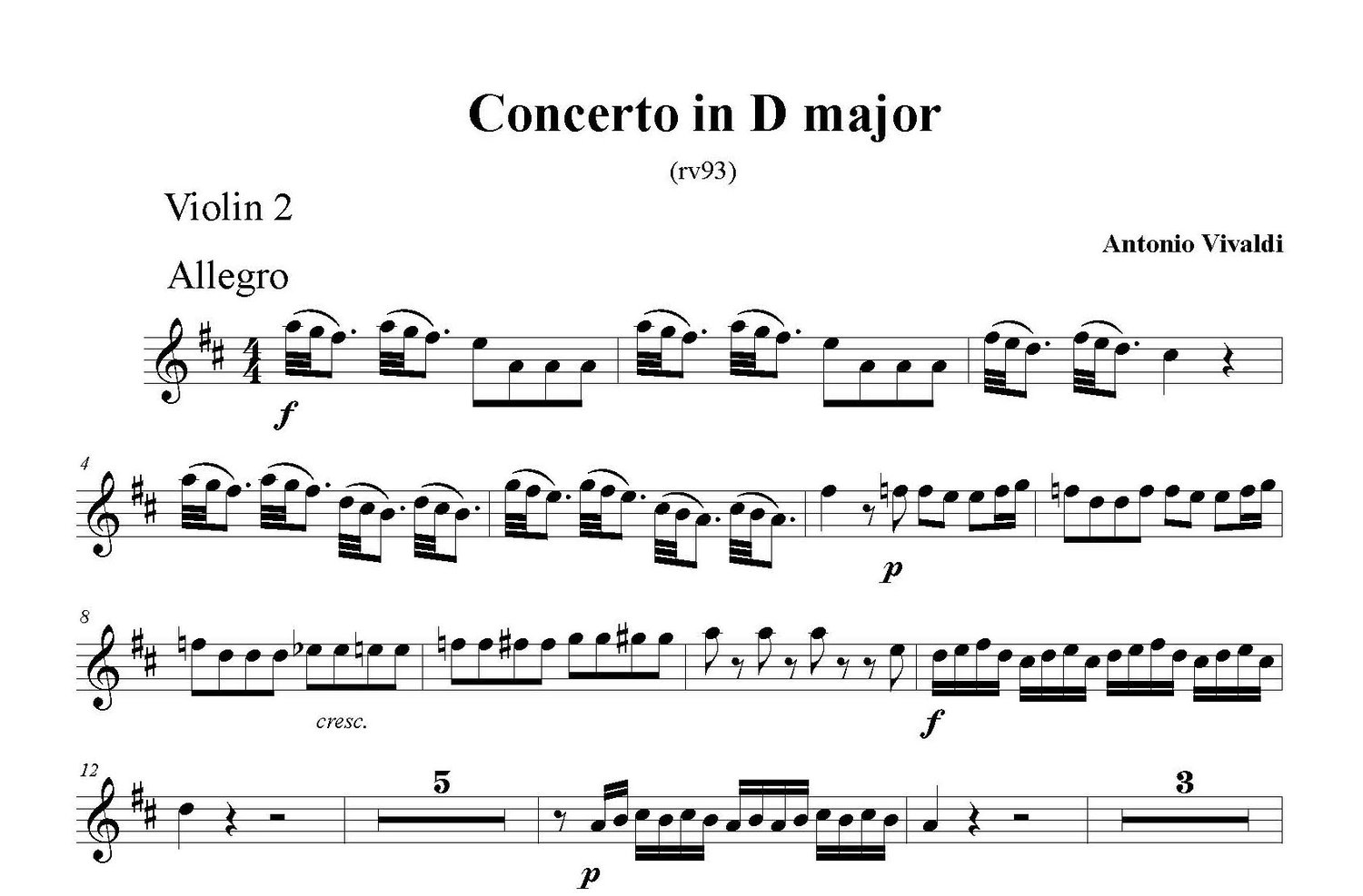 Concerto in D Major (rv93) Allegro - violin2